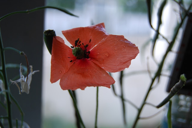 A papoila que o Jojó me deu enquanto preparava a mesa para o pequeno-almoço, ficou a olhar para mim na janela da cozinha, enquanto bebia o meu café.