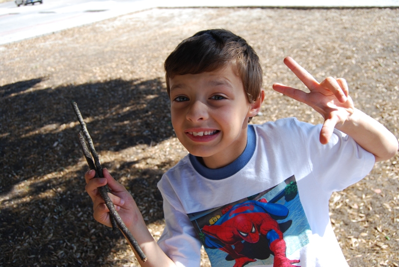 Depois dos planos de irmos a Ponte de Sôr no sábado terem fracassado, resolvemos aproveitar a manhã para tratar do jardim e à tarde ir ver a exposição de dinossáuros no Free Port juntamente com o Ricardo, a Rute, o Simão e a mãe da Rute. O Sammy e o Jojó adoraram, o Simão não tanto, estava demasiado escuro e não é que os bichos mexiam mesmo?! Foi uma tarde animada, basta a presença dos filhotes! Correram e saltaram tudo o que foram encontrando pelo caminho e andaram a caçar os grandes ovos de Páscoa que enfeitavam as ruas. Colos diversos, cavalitas, ídas à casa de banho, gelados, iogurtes e fruta, fila para comprar bilhete(viva a D. Maria José!)carrinhos, descuidos, mudas de roupa, corridas atrás dos pequenos atletas... monotomia é definitivamente algo pelo qual nunca passamos. O Sammy é apaixonado por dinossáuros e quando chegámos a casa disse: "Gostei muito do meu dia!"